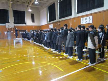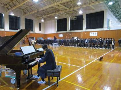 卒業式に向けて 公開日 2024/03/07 更新日 2024/03/07 今日の興南中 4限、1・2年生は卒業式に向けて合唱練習をしました。3年生が入試に臨んでいる時間です。3年生に届くようにと、思いを込めて歌いました。