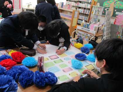 1年生・飾り付け 公開日 2024/03/11 更新日 2024/03/11 1年生 3月8日(金) 6限 今日も卒業に向けてお花を作ったり、虹を架けたり、1年生から3年生の先輩方へのメッセージカードを貼ったりしてお祝いムードを高めました。 月曜日、先輩方に喜んでもらえたら嬉しいです。 by 1年生
