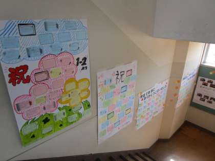 卒業を前に 公開日 2024/03/11 更新日 2024/03/11 今日の興南中 卒業を前に、1・2年生から3年生へ、3年生から1・2年生へのメッセージが玄関や階段に掲示されています。 それぞれの伝えたい思いがあふれています。素敵な先輩・後輩の関係です。 3年生の思い出の写真コーナーもあります。