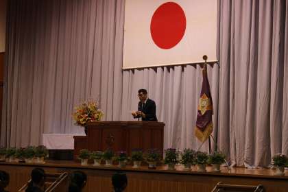 式辞に続いて、育友会会長様から祝辞をいただきました。