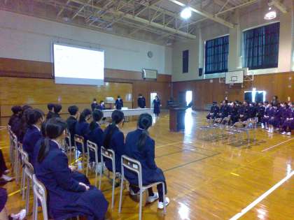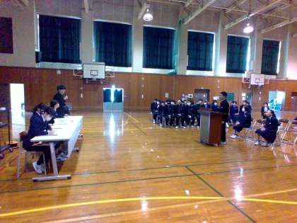 2年生・修学旅行に向けて(3月15日)・その2 公開日 2024/03/15 更新日 2024/03/15 2年生 3月15日(金) 5限 スローガン承認に続いて、修学旅行の持ち物、金額などについての提案があり、持ち物について質疑応答を行いました。 質問する生徒と答える学年生徒会。 多くの質問が出されたことにより、修学旅行の具体的なイメージをもって、学年全員で問題を共有することができました。 有意義な学年総会でした!