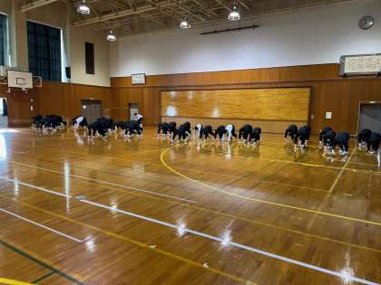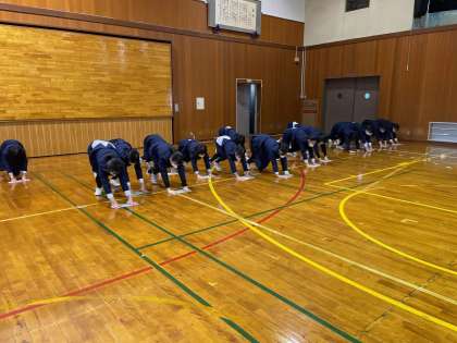 学年の半分以上が集まり、体育館の雑巾がけレースをしました。