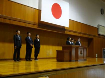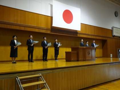 離任式を行い、離任される7名の先生方一人一人から心温まるお話をしていただきました。