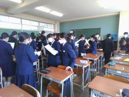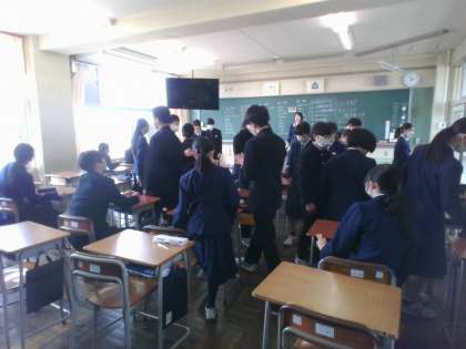 4月8日(月) 3年生の学級活動 公開日 2024/04/08 更新日 2024/04/08 3年生 新しいクラスになって、3日目です。学級の仲間とのふれあおうと、3年生では自己紹介カードを記入したり、エンカウンター(出会い)の活動をしました。 1年間一緒に学習する仲間との絆を深め、あたたかいクラスをつくっていきましょう。 写真上 3年1組 中 3年2組 下 3年3組