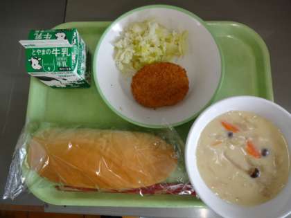 今日の給食 公開日 2024/04/08 更新日 2024/04/08 今日の興南中 4月8日(月) 今日のメニューは、コッペパン、牛乳、豆とかぼちゃのコロッケ、ピクルス、クリームチャウダーでした。 今日から1年生の給食がスタートしました。1年生のみなさん、中学校で初めての給食はどうでしたか?