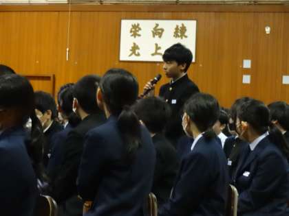 本日4限に創校記念式を行い、本校第7回卒業生の野上宏志さんに「中学生とキャリアデザイン」と題してご講演いただきました。
