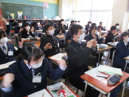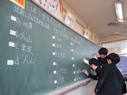 今日の授業 公開日 2024/04/25 更新日 2024/04/25 2年生 4月24日(水) 4限 2年生は授業も一生懸命です。 パート毎に歌を歌ったり、黒板に書きに来たり、体を使って楽しく覚えたりしました。 (写真 上:2年1組 音楽) (写真 中:2年2組 社会) (写真 下:2年3組 理科)