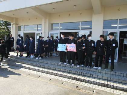 本日4月25日木曜日 2年2組のみなさんであいさつ運動をしている様子です。