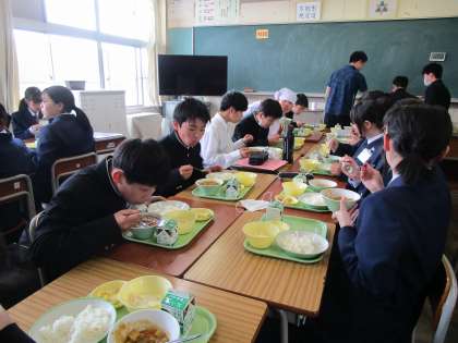 1年生 今日の給食 公開日 2024/05/02 更新日 2024/05/02 1年生 本日は、中学校に入学して初めてのカレーライスでした!給食の準備・片付けも、かなり早くなってきました。 たくさんの笑顔が見られた給食の時間でした。
