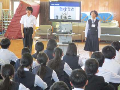 5月10日(金) 5限 その後、学年代表が学年目標について話しました。