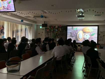 1組は「明治なるほどファクトリー」でチョコレートの原料のカカオについて説明を受けました。
