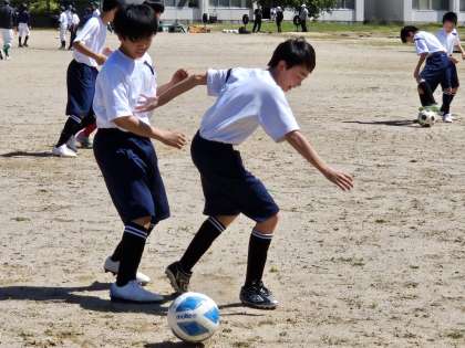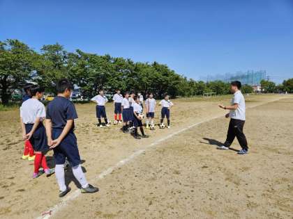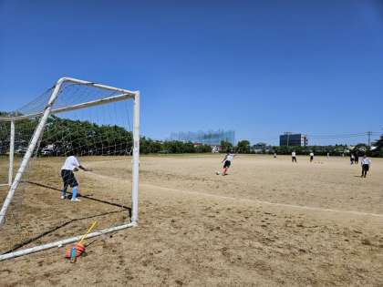 5月18日(土)休日練習 サッカー部 公開日 2024/05/18 更新日 2024/05/18 今日の興南中 朝から日差しがまぶしく気温がぐんぐん上がっています。今日のサッカー部は1,2年生で行いました。今日は基礎練習。先生がキックの種類と足の動きを見せています(写真上)。その後2人で行うボールの取り合い(写真中)や三角パスから、速いパス回しを目指して頑張っています。確実にコールに入るようシュートも頑張れ!