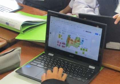 次に班ごとにクロムブックを使って、意見をまとめました。その際、カテゴリー毎に情報を集めました。今日は、各自、富山のどんなことについて調べたいと思ったかをクロムブックのアンケートで答えました。