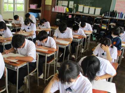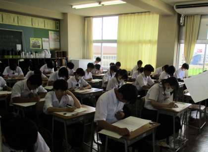 期末試験3日目です。本日が最終日です。2年生は数学の試験に取り組んでいます。1学期のがんばりが、十分に発揮されていることを期待しています。