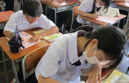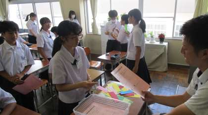 6月26日(水) 1年生「1学期末考査の振り返りをしよう。」 公開日 2024/06/26 更新日 2024/06/26 1年生 本日3限目に9教科目のテストを終え、皆ほっとした表情でした。4限目に早速期末考査の振り返りをしました。「テスト勉強でこれはうまくいった」や「これは効果がなかった」などを書き留めます。また、テスト自体の振り返りもしました。よかった点と反省点を書きます。担任の先生にどんなことを書いたのかを見てもらっているクラスもありました。