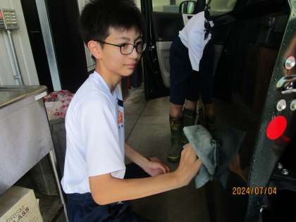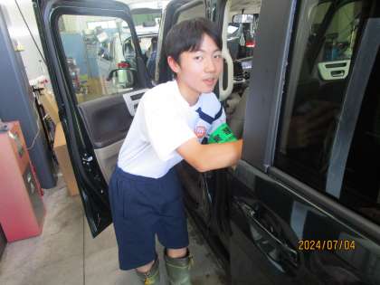 「社会に学ぶ『14歳の挑戦』」活動報告 Honda Cars 公開日 2024/07/04 更新日 2024/07/04 14歳の挑戦 洗車を頑張って行っているところです。今日はたくさん洗車や車内の清掃をしました。