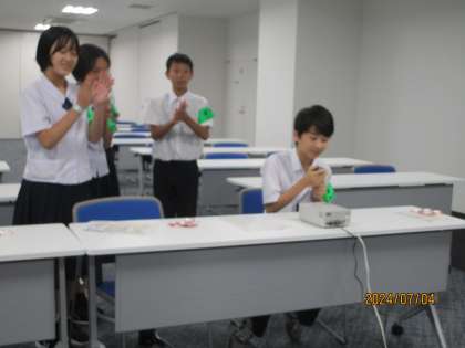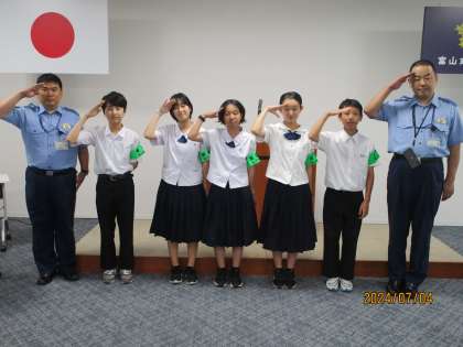 「社会に学ぶ『14歳の挑戦』」 活動報告 富山南警察署 公開日 2024/07/04 更新日 2024/07/04 14歳の挑戦 今日は講習を受けたり、無線連絡の練習をしました。最後に修了証をいただくこともでき、生徒たちは喜んでいました。
