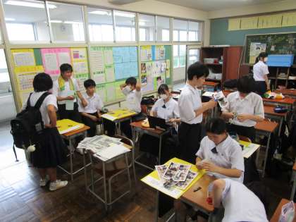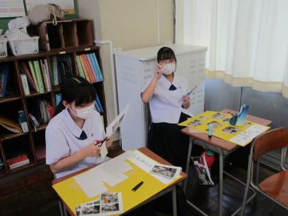 「社会に学ぶ『14歳の挑戦』」活動ポスター作り2 公開日 2024/07/11 更新日 2024/07/11 2年生 『14歳の挑戦』実行委員の精鋭たちが、頑張って活動ポスターを作成しています。はやく廊下掲示したいです。