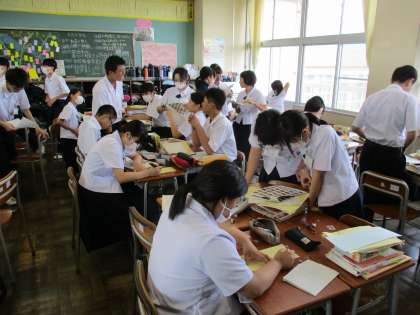 社会に学ぶ「14歳の挑戦」を終えた2年生は、そこで感じたことや学んだことを5・7・5・7・7の短歌にしました。