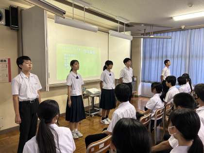 1学期最後の学年集会を行いました。学年生徒会から各クラスのよかった点や反省点の振り返りがあり、2学期に向けて何をすべきか考えることができました。また、学習面や生活面、進路についての話もあり、夏休みも気を引き締め、有意義に時間を使おうとする気持ちを高めることができました。受験生としての自覚をもって、行動したいと思います!
