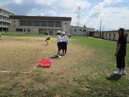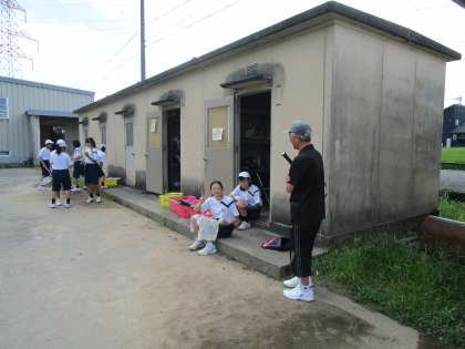 暑いので、休憩をとりながら頑張っていました。帽子はやはりあった方がよいですね。ペアになって球出しをしています。