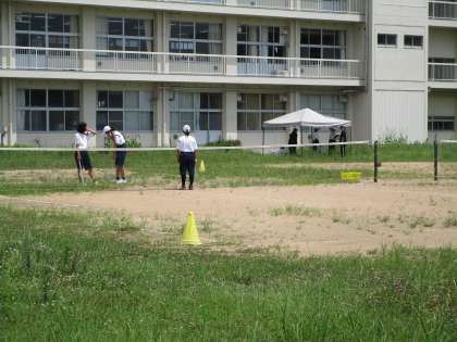 アラートは出ていませんが、今日も暑いです。テントを校舎側に立てて、日陰を確保して行っています。皆、一生懸命に活動しています。