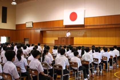 33日間の夏休みが終わり、大きな事故やけがもなく、全校生徒が元気に2学期の始業式を迎えることができました。