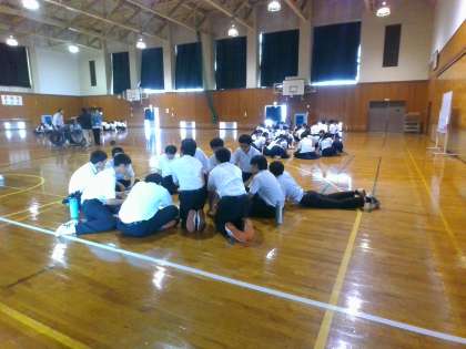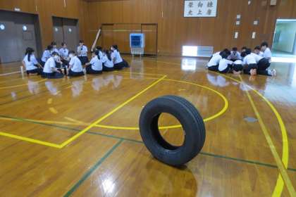 3年生 体育大会に向けて 公開日 2024/09/08 更新日 2024/09/08 3年生 9月6日(金) 6限 3年生 体育大会の学年種目は、「タイヤ引き」です。 興南中学校では5年ぶりに行われる種目です。今日は、先生からルールや、安全に競技を行うための約束を聞いて、団ごとに作戦を立てました。