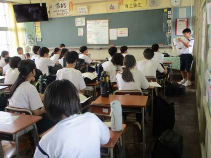 保健実践部が各教室で熱中症予防について呼びかけています。
