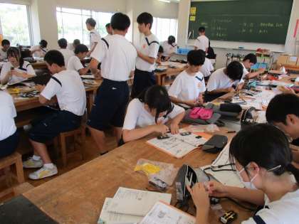 2年生・今日の授業 公開日 2024/09/17 更新日 2024/09/17 2年生 9月17日(火) 午前中 今日の午前中は体育大会の練習もあったので、午前中は体育服で授業を受けました。 今週は体育大会の練習あり、授業ありの慌ただしい毎日ですが、生徒は切り替えて、中間テストに向けて授業も真面目に取り組んでいました。 (写真 上:2年1組 英語 教え合い学習中) (写真 中:2年2組 数学 単元テスト中) (写真 下:2年3組 技術 テーブルタップ組み立て中)