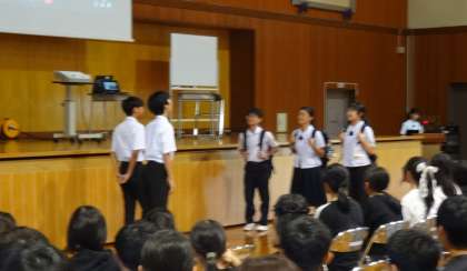 また、午後からは小学校6年生の学校選択のための学校公開を行いました。生徒会役員のみなさんが楽しい劇を交えながら興南中学校の生活を紹介してくれて、小学生のみなさんやその保護者の方に楽しんでいただけたと思います。部活動の様子も十分見ていただきました。