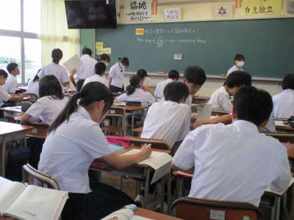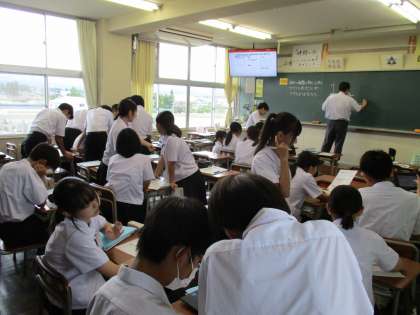 2年生・公開授業 公開日 2024/09/22 更新日 2024/09/22 2年生 9月21日(土) 5限 今日は午前中に学習参観で保護者の方が、5限と部活動中は学校公開日で小学6年生とその保護者の方がたくさん見に来られました。 お足元の悪い中、ありがとうございました。 (写真 上:2年1組 前を見て話を聞く理科) (写真 中:2年2組 教え合い学習の数学) (写真 下:2年3組 行列のできる英語)