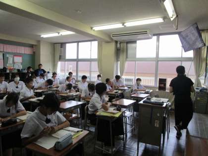 9月21日(土)1年生 学校公開日、授業公開 公開日 2024/09/22 更新日 2024/09/22 1年生 今日は5限目に学校公開日の授業公開がありました。6年生の姿を見つけ、各クラスともそわそわしている様子がありました。6年生の皆さんは、中学1年生の授業の様子をどのように思ったでしょう。この時間はどのクラスも担任の先生の授業でした。 写真上1組数学、中2組家庭、下3組保健