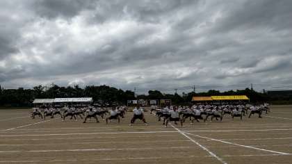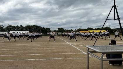 本校では、体育の授業で練習した約3分の「TAKIOのソーラン節」の踊りをベースに、団ごとに隊形や掛け声等を工夫したパフォーマンスを取り入れて、4分の団演技を仕上げます。