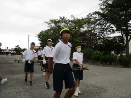 2年生・片付け&集合 公開日 2024/09/27 更新日 2024/09/27 2年生 体育大会の後、2年生はテント、土嚢、机・いす等の片付けを行いました。 テキパキと動いて、あっという間に後片付けを終わらせました。 その後の集合では、男子団リーダーが今後の学校生活に向けて士気を高めてくれました。
