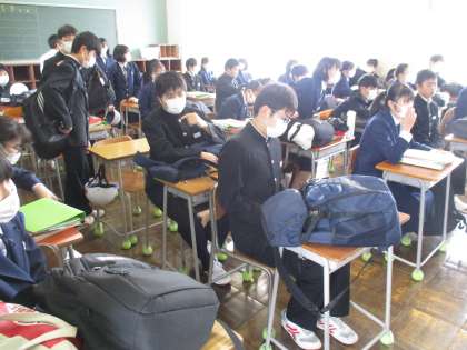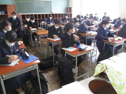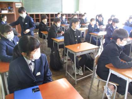 (写真 上:配りものを配布した後、新クラスが発表されました。)