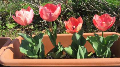 チューリップ咲き始める… 公開日 2020/04/09 更新日 2020/04/09 今日の興南中 4月9日(木) 9:30 前庭の興南桜は散り始めていますが、…… 前庭のプランターのチューリップは咲き始めました!