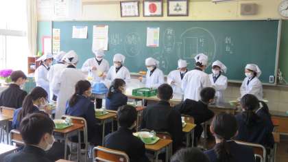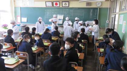 1年・給食の準備も整然と……! 公開日 2020/04/09 更新日 2020/04/09 今日の興南中 4月9日(木) 12:45 1年生は今日から給食が始まります。 給食当番が整然と配膳しています。 (写真 上:1年1組 中:1年2組 下:1年3組) ちょっと時間はかかっていますが、初々しさいっぱいです!