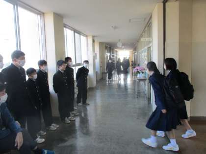 2年生が、登校してきた1年生に「おはようございます!」元気に声をかけていました。