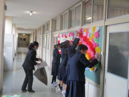 4月10日(金) 放課後 2年生有志は、入学式で校舎内を飾った掲示物を片付けました。 どうもありがとう!