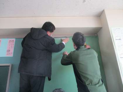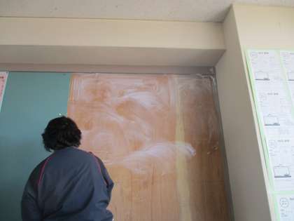 1年生の先生は、チーム力を発揮して、各教室の古くなった壁紙をどんどん貼り替えました!