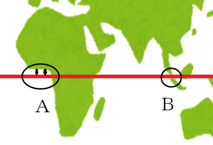 A・・アフリカ大陸の西側より少し南(下側)にある