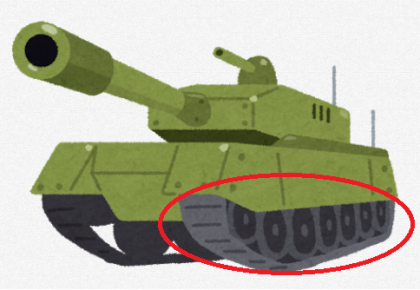 無限軌道(キャタピラー)は、世界各地の技術者が考案していましたが、1915年にこれを応用した「戦車」(図:中)が生産され、「第1次世界大戦」や「第2次世界大戦」で使用されました。