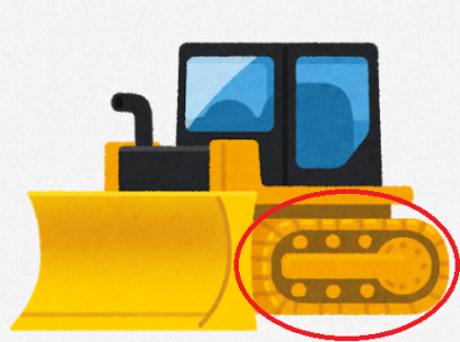 無限軌道は、ブルドーザー(図:下)の装置に使われ、現在でも世界中の工事現場で使用されています。