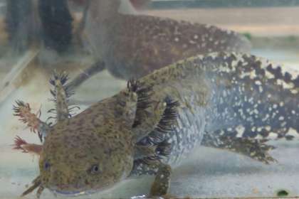 旧2年2組のウーパールーパー「とうふ」「ごま」は転校しました。