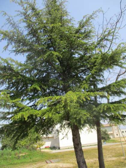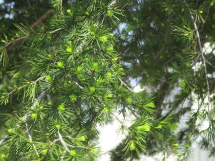グラウンド北側のヒマラヤスギの枝に新芽が芽吹きました。