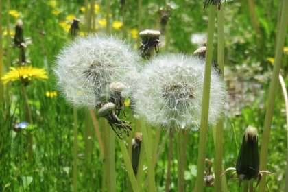 お散歩・興南 その22 公開日 2020/05/04 更新日 2020/05/04 今日の興南中 5月4日(月・みどりの日) 14:00 下熊野(東)交差点のすぐそばの空き地に咲いているタンポポですが、綿毛の方が目立ってきました。 綿毛もよく見るときれいです!