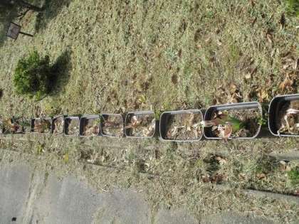 チューリップのプランターは洗浄・日干して、5月末の新しい草花の植え込みのために使われます。(写真:右)