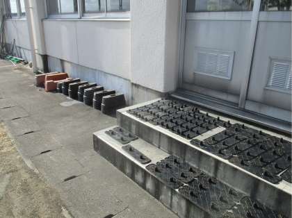 生徒玄関前のチューリップのプランターは、今シーズンの役目を終える時がきました。