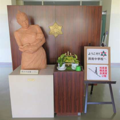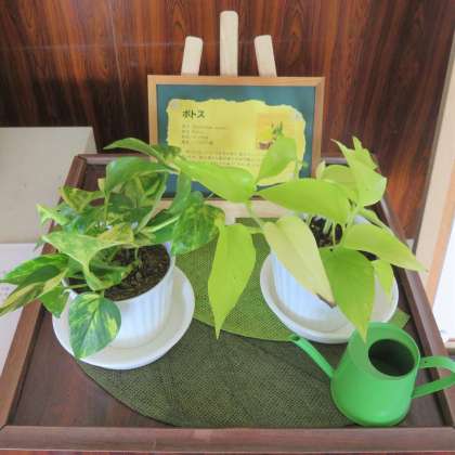 正面玄関の今月の植物を、3か月ぶりに「カランコエ」から「ポトス」にチェンジしました。